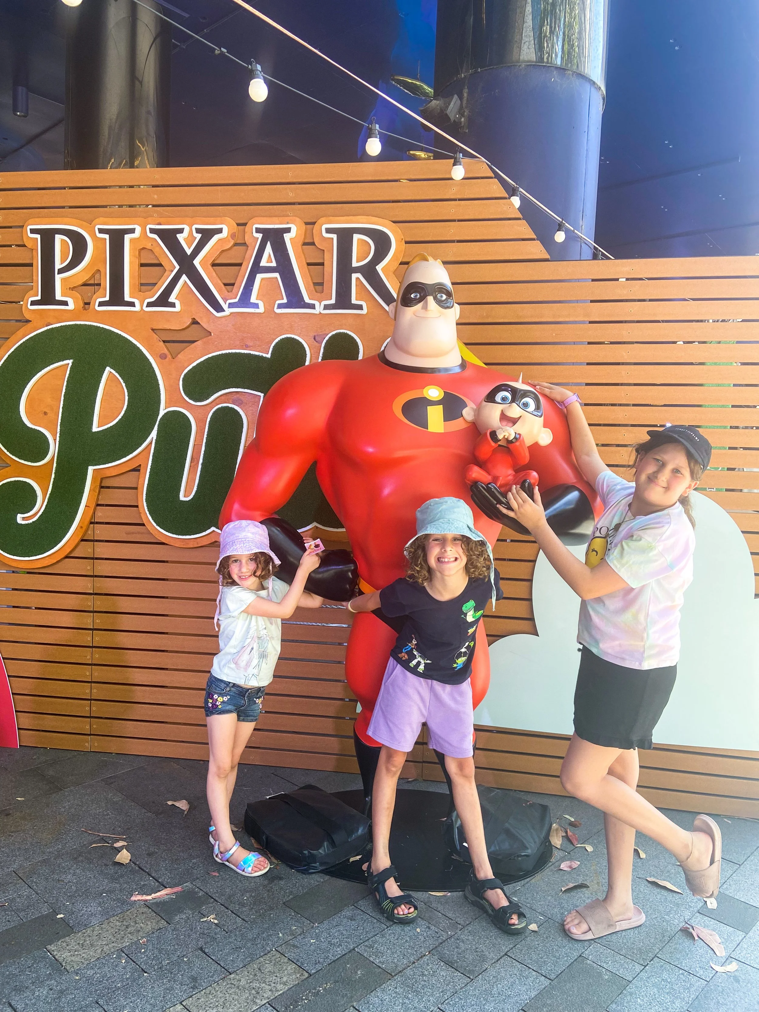 Navigating holes from the relatively easy to a little more challenging (takes maybe 25 attempts to get the ball in the hole lol!), Pixar Putt is fun for the Mums and Dads right down to the kidlets (ours are aged 10, 7 and 5). My two big kids took turns writing our scores down on the cards provided… which I double-checked after scoring a HOLE IN ONE!! (That was my greatest score overall haha)